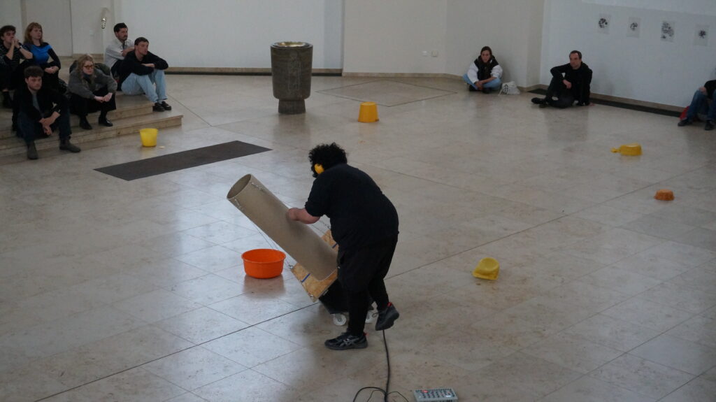 The performances took place during the second week of Marie’s exhibition. The plastic bowls were part of it.